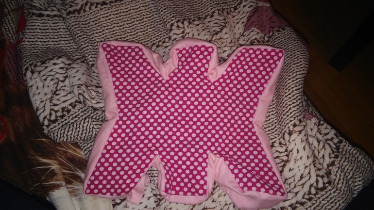 И ещё как припуски подредактируете, проложите потом смёточную строчку - припуск заметать на сторону светло-розовой ткани и потом проутюжить тихонечко. После этого смёточную строчку можно убрать