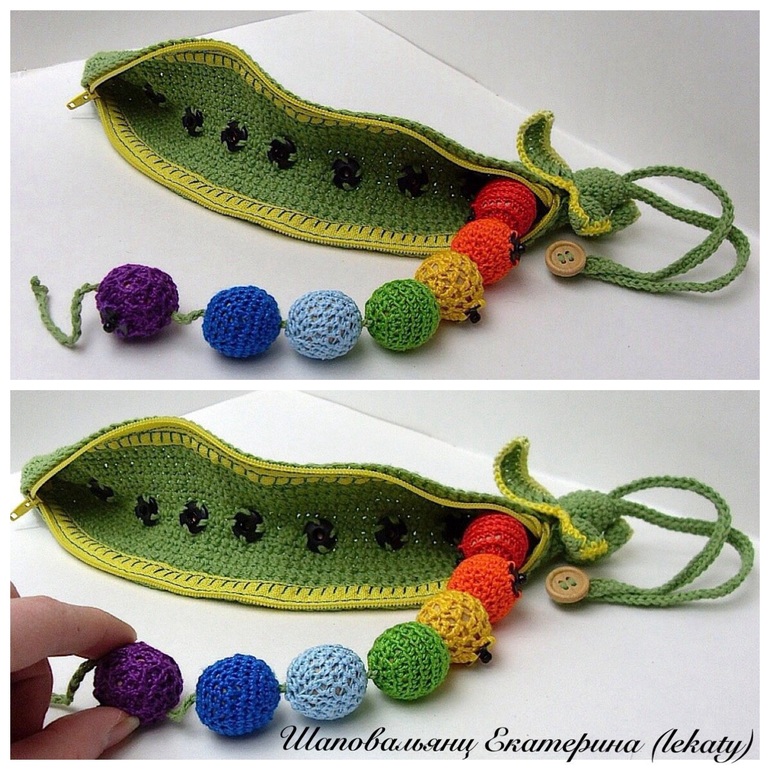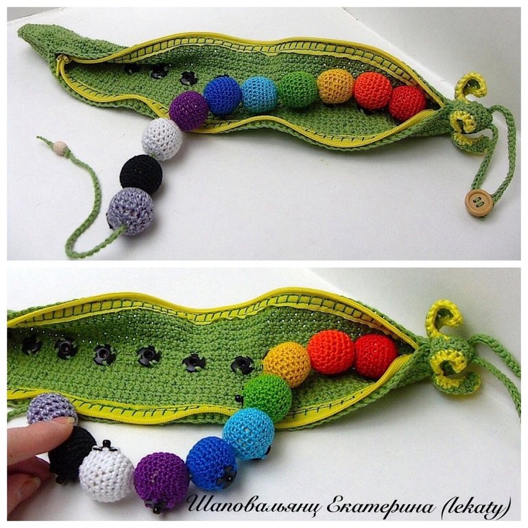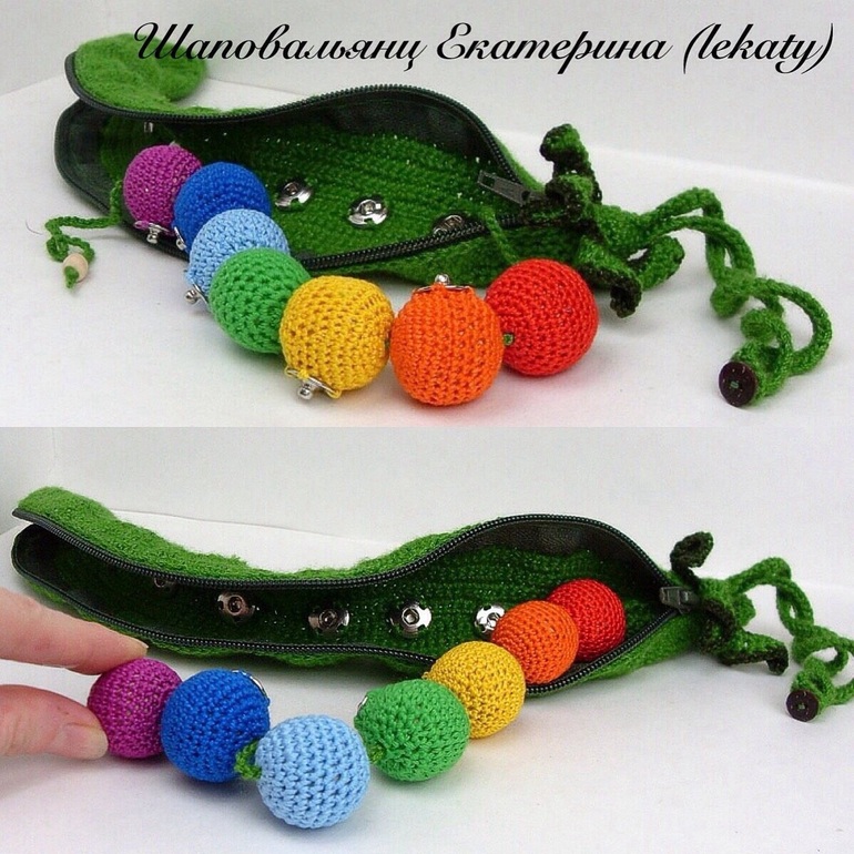 А в этом стручке каждая бусинка отличается на ощупь за счёт использования различных видов вязки)))