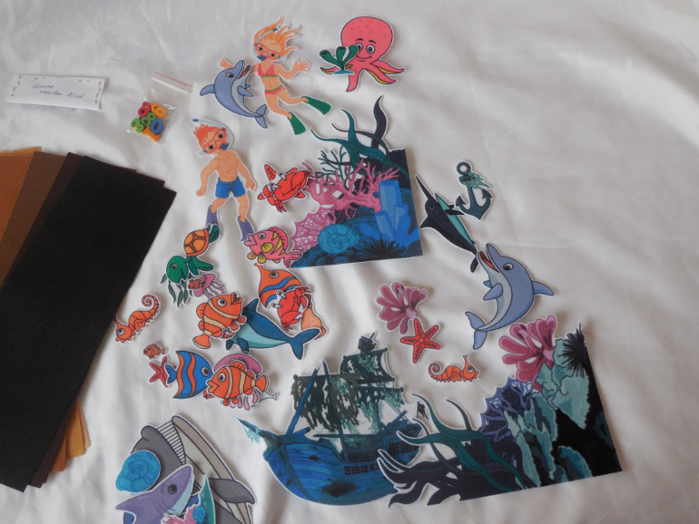 А для моего хомяка были целые богатства! Особенно поразил фетр с рисунком!!! Я такого красивого еще не видела... а какой мягкий!!! А вырубка с морскими обитателями!!! Маленькие ручонки так и норовили что-нибудь стащить, пока я фотографировала )))