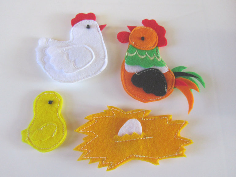 Ну, а кроме того, сшила еще и семейку Курочкиных, на липучке. (Наглый плагиат с сайта Шилопоп)Хочу еще дошить остальные семейки- Свинюшкиных, Коровкиных и т.д.