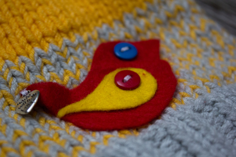 И шапка на теплую осень и весну из хлопка с акрилом Alpina, птичка из фетра: