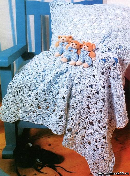 Я влюбилась в этот комплект. Хочу связать такой для подруги, но тоже в нейтральных цветах (обвязку и детали делать не голубым, а бежевым, серым, салатовым, короче нейтрального цвета по гендерной принадлежности) http://st.stranamam.ru/data/cache/2014jun/13/43/12412559_50715thumb650.jpg