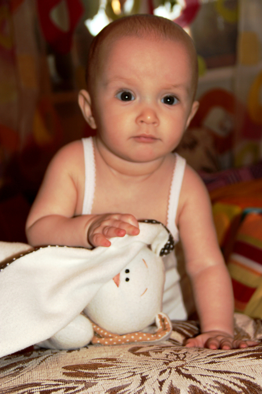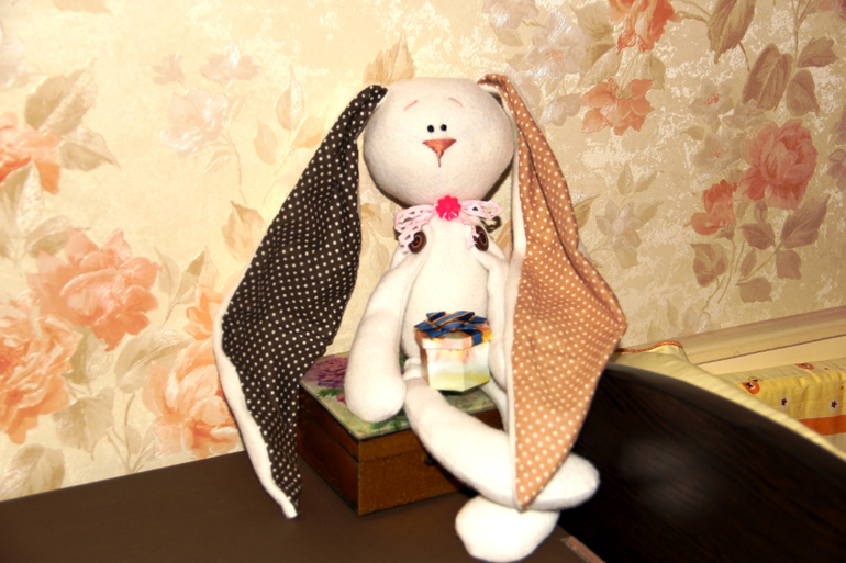 Давно уже мечтала сшить игрушку для своей маленькой дочурки...она пока в куклы не играет...ей больше интересно то, что гремит и шуршит...и то, что можно затащить в рот...хотелось что-то такое мимимишное...мягонькое и индивидуальное...и нарисовался вот такой зайка...лежал неделю...а я вынашивала мысль как и что...и вот, сегодня сшилась зайка по имени Фо (так сказала доча, когда ее увидела