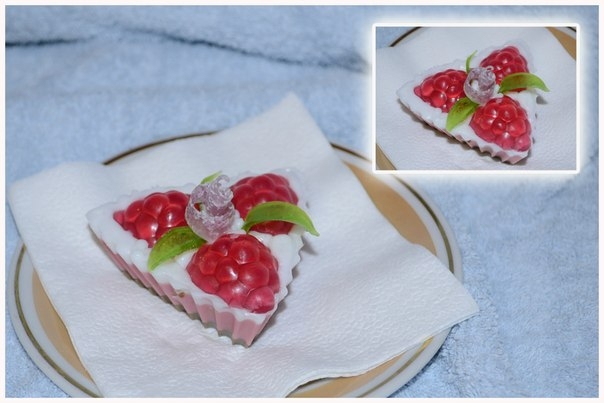 Прелесть прелеснейшая! А пирожные (те, которые вроде шоколадных) — так прямо совсем настоящие — слюнки потекли ))) Самое то — для "весенней диеты". И с малинками очень красивые