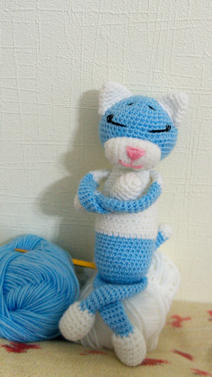 Сын очень просил вязаного кота. Выбрали такого. Переименовал Аминеко в Ваську. ))))