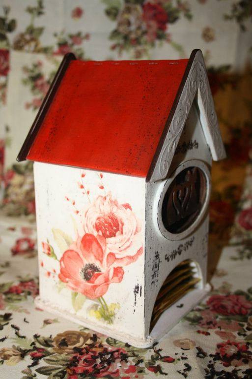 ДекупажДомик в технике декупаж. Сделан домик на заказ для такого же творческого человека. Делала вслепую, по словесному описанию интерьера и рассказе о человеке, его пристрастиях. Результат порадовал и меня и заказчицу, и именинника :)))