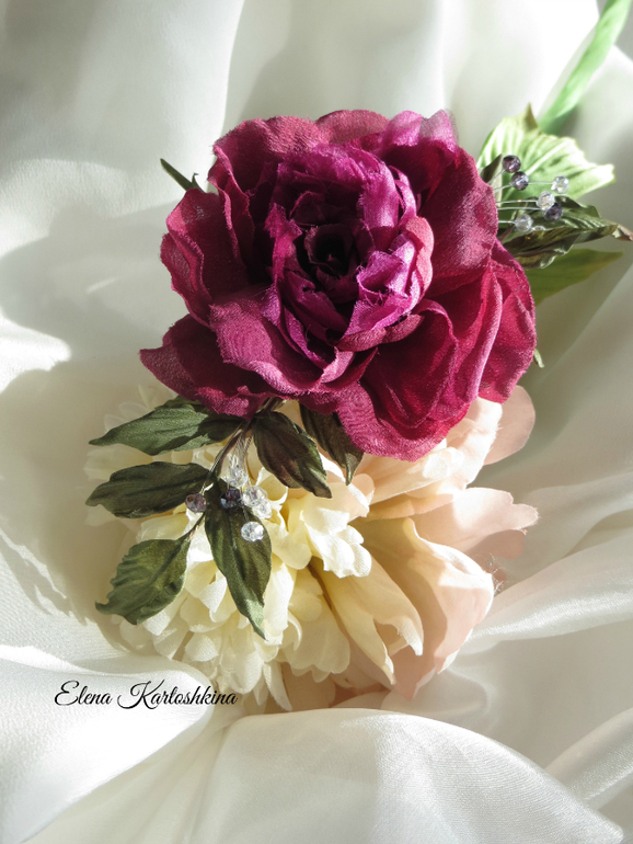 Мастер классов много по шелковой флористике в интернете, есть красивая роза по МК Ольги Якимовой погуглите.