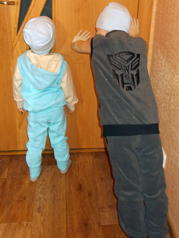 Вот такие комплектики Надя сама сшила для моих мальчишек. Они просто потрясные у меня нет слов. У Макса такой приятный бирюзовый цвет, просто обалденный. Толстовка двусторонняя, т.е швы и внутри лицевые.