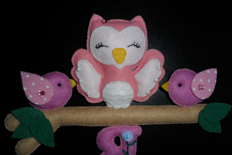 1. Маленькая петля с обратной стороны примерно на уровне клюва. Именно маленкая, чтобы не заваливалась более нескольких миллиметров.2. На такие же булавки, как на фото, заднюю часть совы посадить. То есть воткнуть, через полсантиметра обратно и в обои. А вообще я бы хвост убрала и спину бы к ветке пришила более плотно, чтобы держалась не по одной тонкой линии, а как бы по овалу.