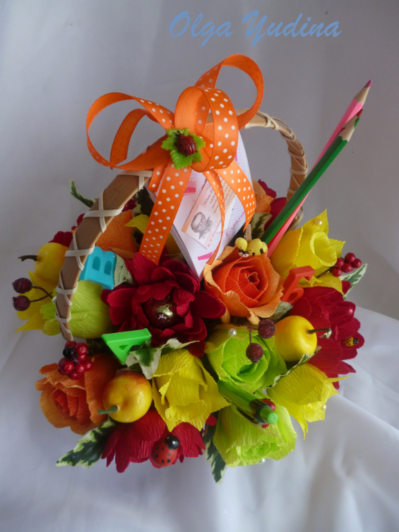 И та же дама (что заказывала миники), заказала для учительницы корзинку именно в этих тонах(на мой взгляд осенних ): Корзинка для учителя русского языка и литературы(разбавила корзину помимо других канцтоваров-буквами и на блокноте наклеила высказывание Паустовского про русский язык)