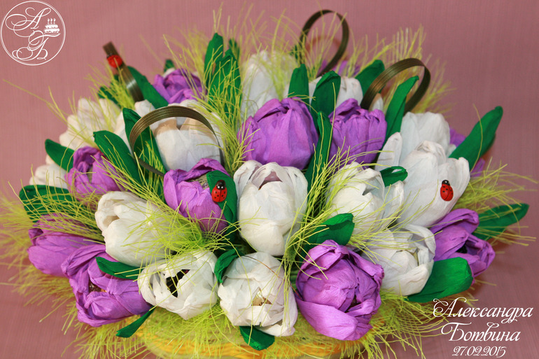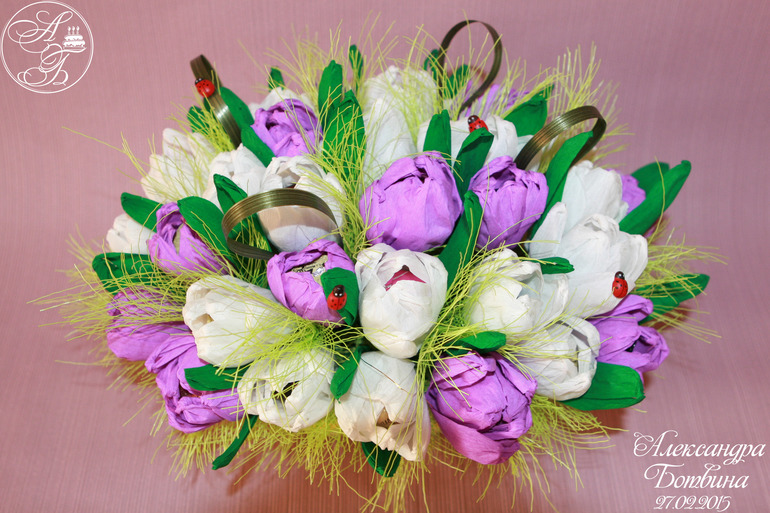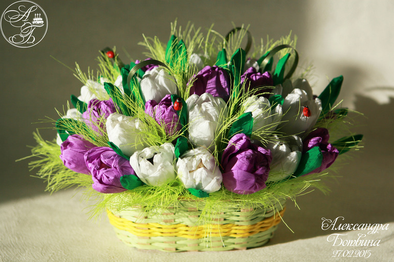 Есть люди которые и с креп-бумагой работаю очень аккуратно и получаются шедевры. Вы-тому пример!!Очень симпатично!