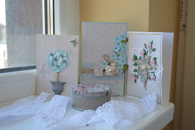 Проснулась ото спячки и нашла время. Итак, пришёл мне заказик срочный, который вот только отвезла. На 3 открытки. И вот что получилось за одну неполную ночь и сегодня утро)))) Конечно, последней ещё под прессом полежать, но заказ надо было срочно, поэтому дала инструкции заказчице. Фото сделаны быстро перед отвозом)