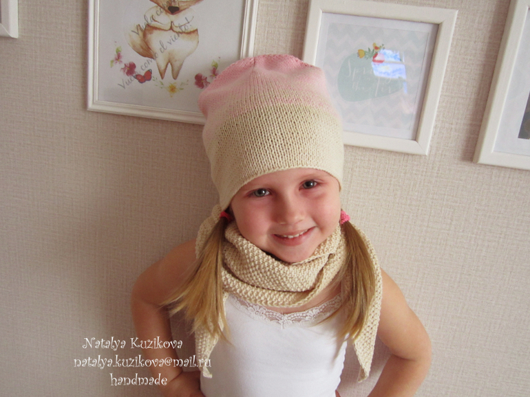 Остроугольный шарфик — интересная идея, смотрится так хорошо, оригинально. Прочитала выше, что ниточки — Ализе Коттон Голд? Действительно, мягенькие и приятненькие, мне понравились, а я думала, какие-то потоньше, чисто визуально))Ещё раз повторюсь, что комплектик сказочный
