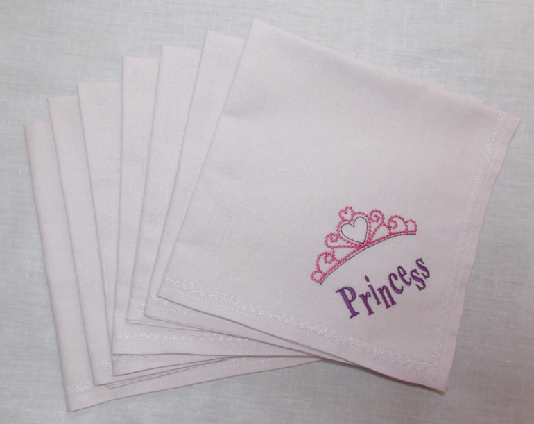 * Льняные салфетки для чаепития или застолья принцессы с машинной вышивкой - 8 шт.
