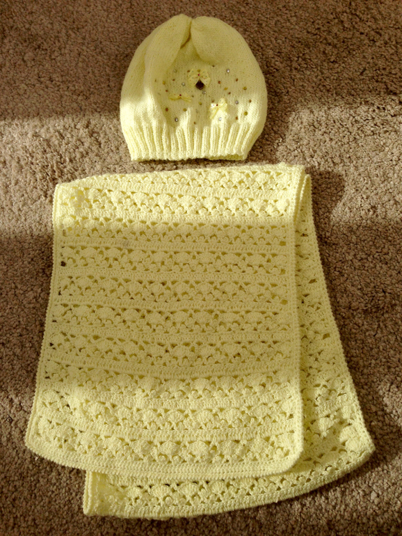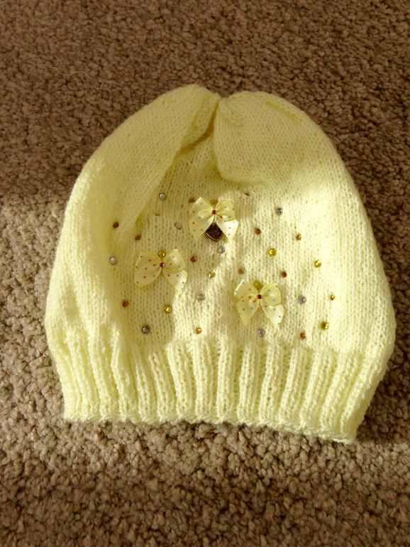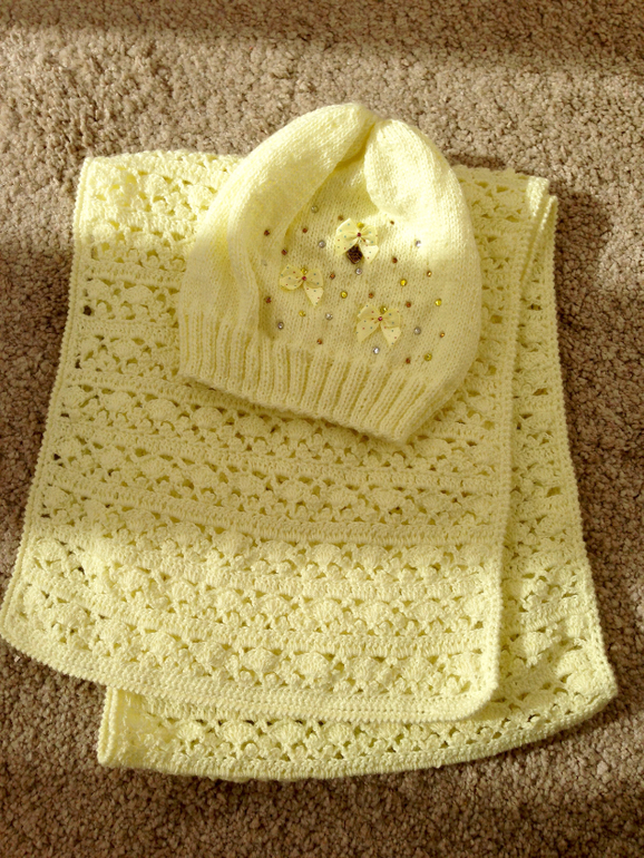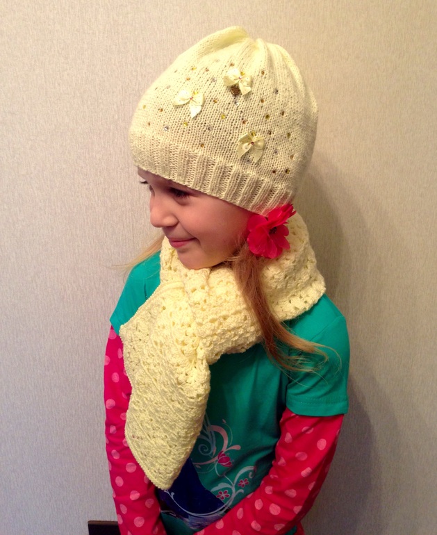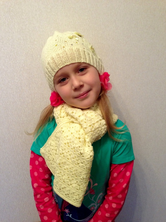 Бабушка связала палантинчики (крючком), а я простые шапочки! Так что одуванчики держитесь!!!
