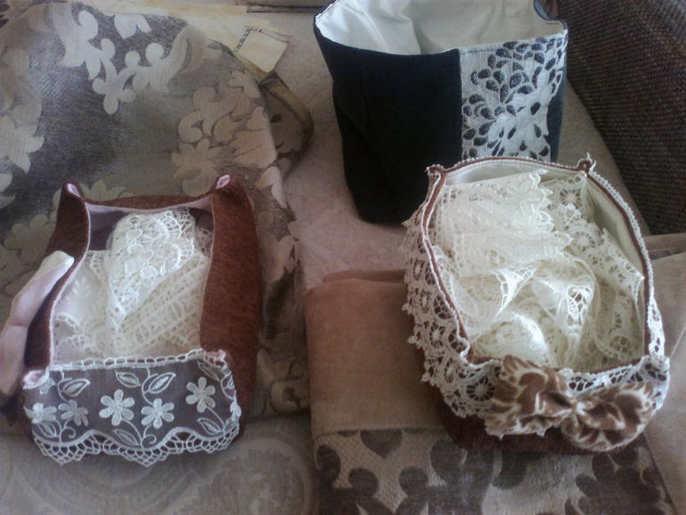 полюбились мне тут и коробочки текстильные и нашила я их немного. несколько сестренке подарила (на первом в том числе), остальные хочу предложить на продажу, только коробочки.