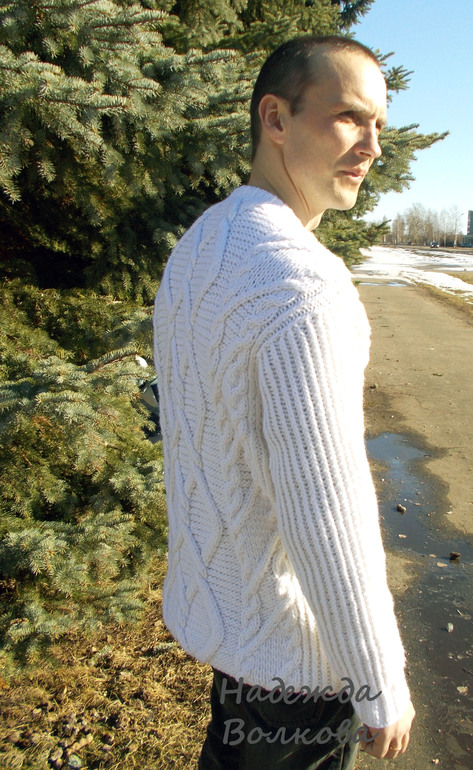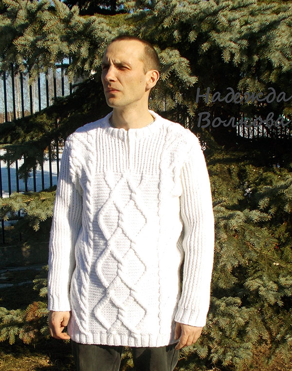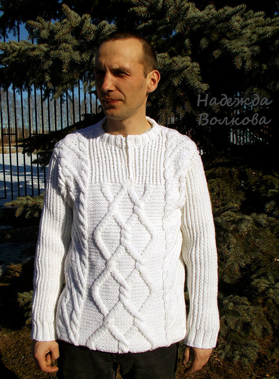 Мужской свитер с косами и аранами