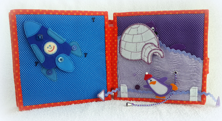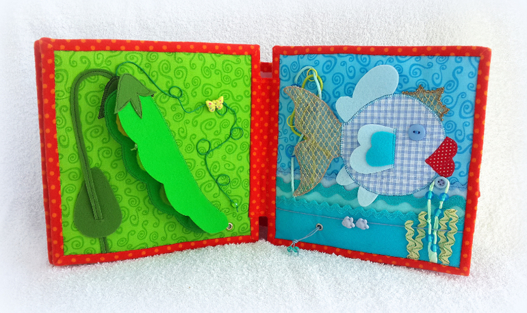 Захлестнула и меня книжкомания. Шила одновременно 2 штуки - для дочки и в подарок. Различаются только обложками и окантовкой, наполнение одинаковое. Размер страничек 20х20 см, застежка - магнитная кнопка.