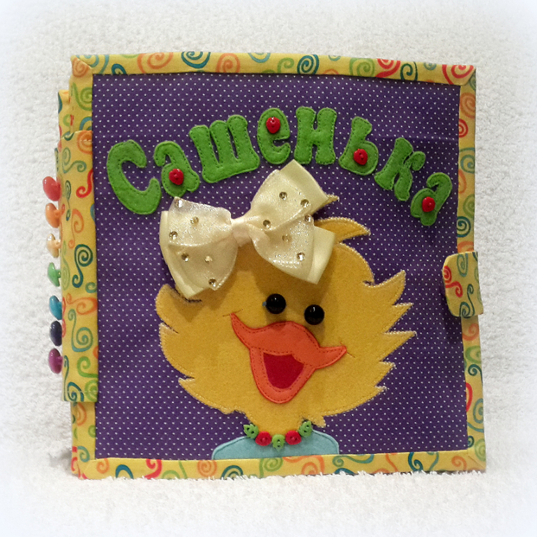 Для дочки - на обложке Утенок с бантом. Бант не снимается.