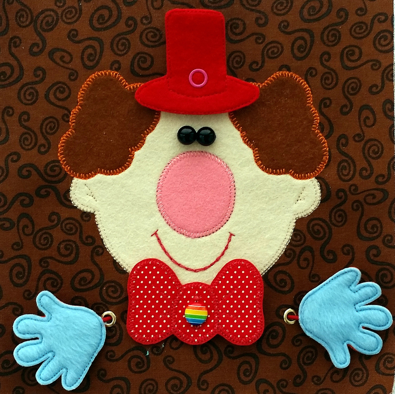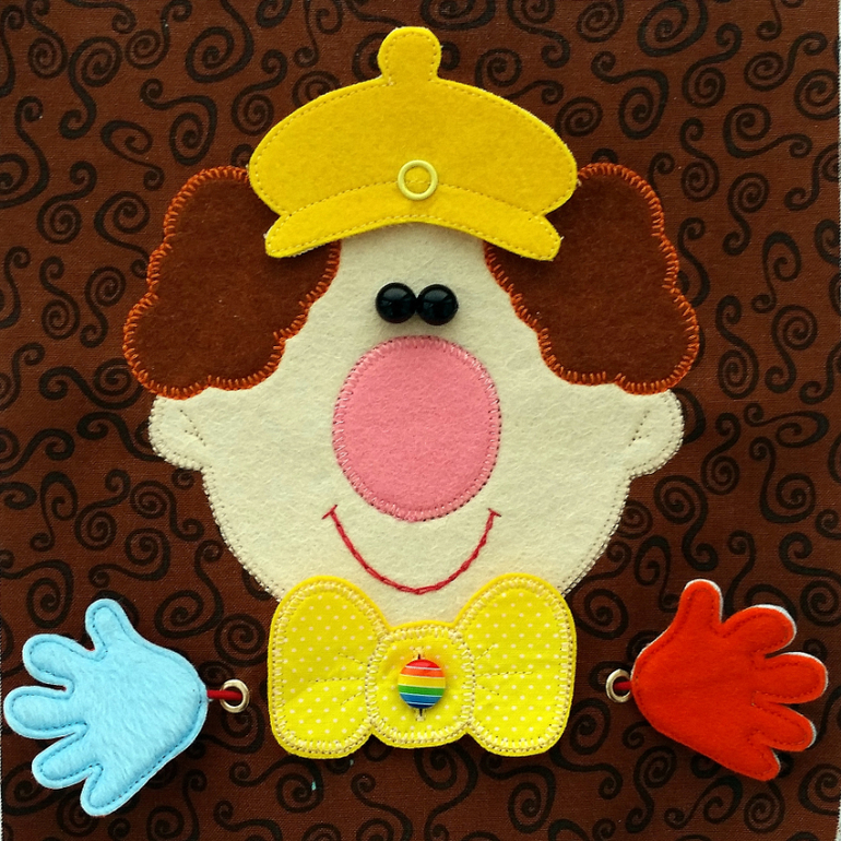 Изначально руки не планировались, пока случайно откуда-то не вывалились на страницу. И, О, чудо! они ж прям для Клоуна созданы! Ручки покупные, мягкие и пушистые. Сделала их двусторонними и вшила резинку. Можно тянуть в разные стороны.