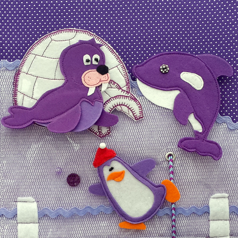Подо льдом плавает касатка. Прячется обратно с помощью шнурочка.