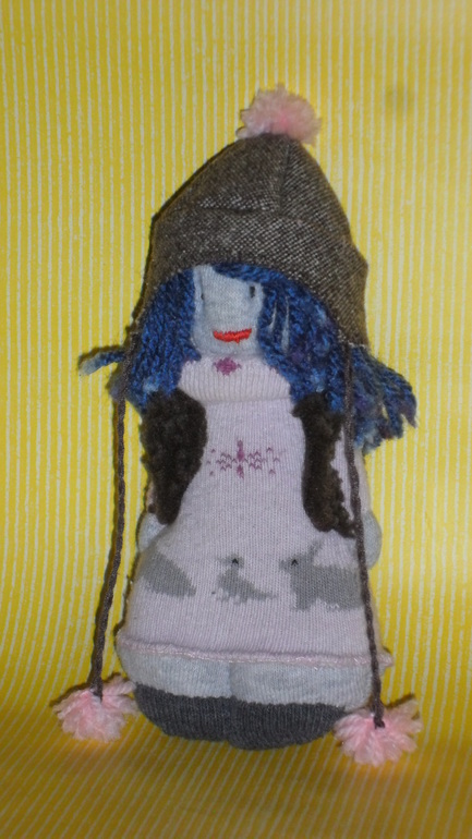Есть у меня коробка, в которую складываются вещи для починки. Где-то пуговицу нужно пришить, где-то молнию заменить. Вот пришло время ими заняться. Подошла ко мне Эвелинка, смотрела, смотрела и говорит : "а сшей мне, мама, куколку". Сначала я и не собиралась этого делать. А потом попались колготки детские и решила я порадовать ребенка. Ну что стоит сшить ляльку. Ребенок рад. Следующий заказ поступил от Леончика на куколку-мальчика.... И как-то я втянулась. В ход пошли колготки, носки, всякие лоскутки. Первенцы катаются с детьми в машине. А это их преемники : девчонки-модницы :)