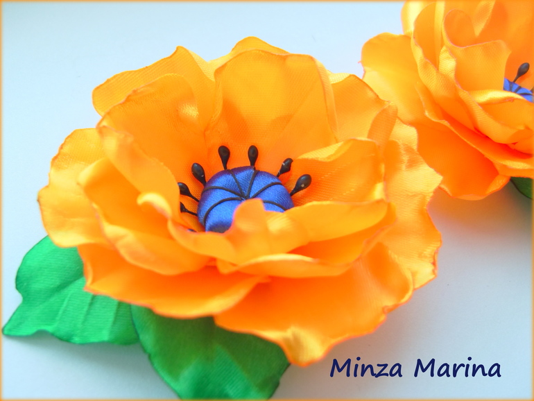 Спасибо. Лепестки в виде сердца. Горячим ножом делаю на них полосочки. Потом опаливаю и заворачиваю края. Делать как мак. Тычинки клеить к кружочку набитому ватой. Приклеить лепестки. Ничего сложного :)