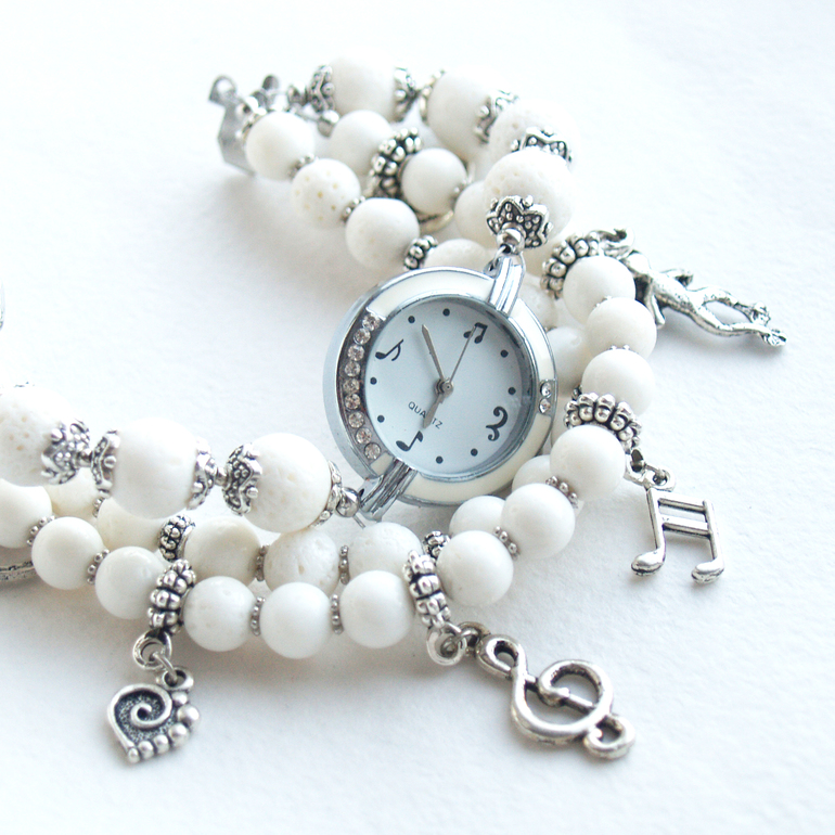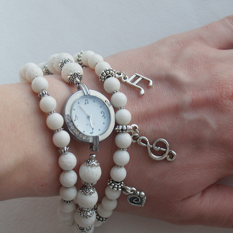 Бижутерия для слингомам. Слингобусы. Грызунки.Тематические часы. Созданы для всех музыкантов (или будущих музыкантов). Собраны из белого коралла.