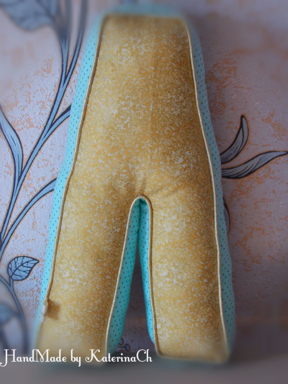 Ну и подушка-инициал впридачу. Ткань: американский хлопок с золотым напылением. Отделка: золотой кант. Подушка двусторонняя, 20*30*7см.