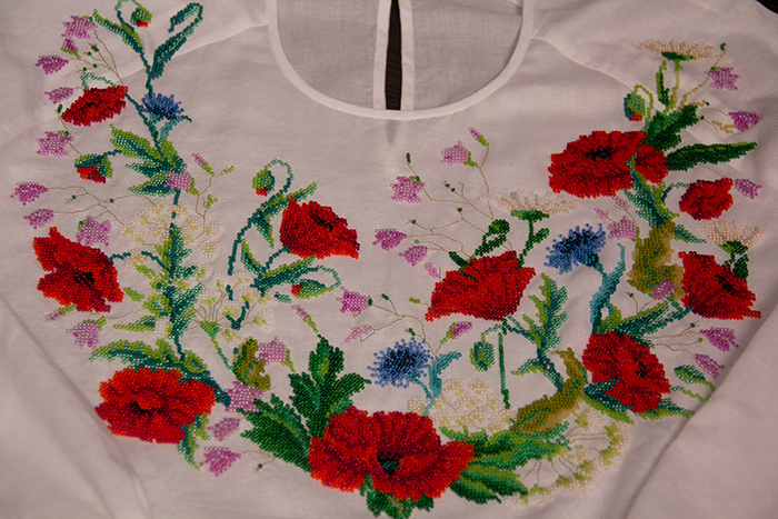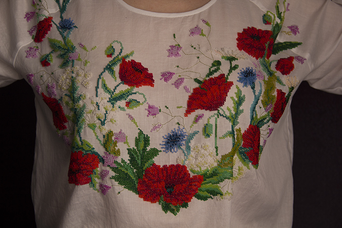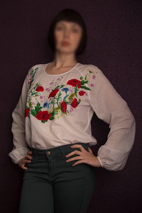 Очень красива сама блузка — скроена хорошо, моделька такая женственная, ткань отлично подобрана. Сама вышивка — отдельный разговор! Очень красивый узор, прекрасно выполнена, не "заезженная" (очень не люблю вышиванок-клонов) и тоже очень женствнная и нежная.