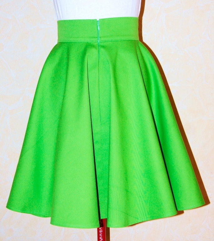 Шитье одежды, выкройки, ремонт одежды, шторы, швейные машины (уже приобретенные)Юбочки-солнце цвета сочной зелени из итальянской хлопковой ткани с эластаном для мамы и дочки (шила на заказ). Взрослая юбочка с широким поясом-корсажем - 6 см. Застежка - потайная молния в заднем среднем шве, переходящая в пояс.