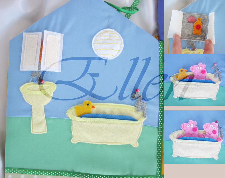 Ванная. Утку можно достать из ванной,положить в шкафчик или умывальник. В шкафчике 2 полочки с шампунем и мылом,которые можно достать.Из-под крана течет водичка)) Пеппа и Джордж отлично помещаются вдвоём в ванне.![]()
