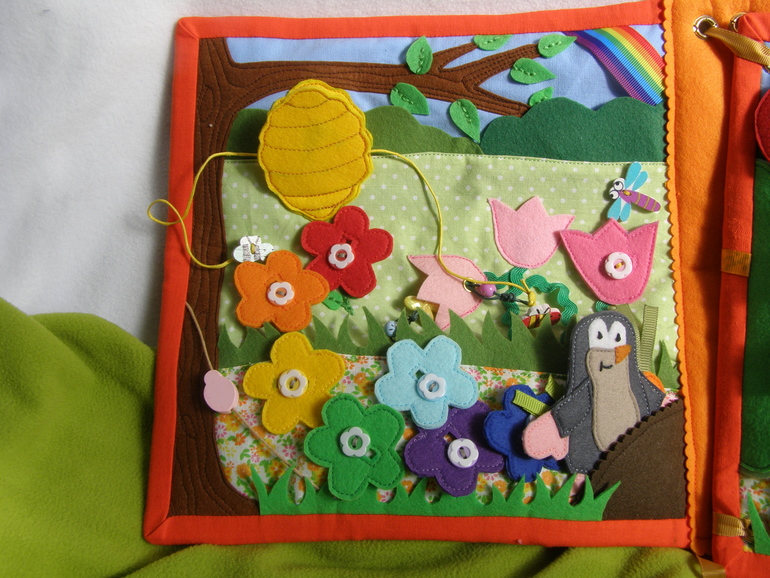 Супер! Такая классная книжка! А на какую тематику вы можете изготовить книжки? И стоимость.... хотелось бы со шнуровкой, молниями, пуговками и всякой развивалкой...