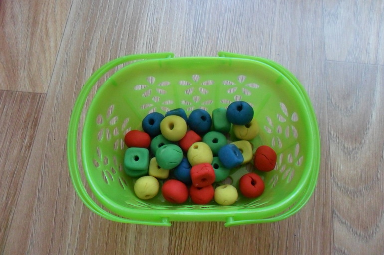 А вот еще развивашка,сделана уже из затвердевающего пластилина,который подарили,но в силу того что дочка просто крошит его и раскидывает,он быстро пришел в негодность и кроме бусин больше ничего не лепилось.