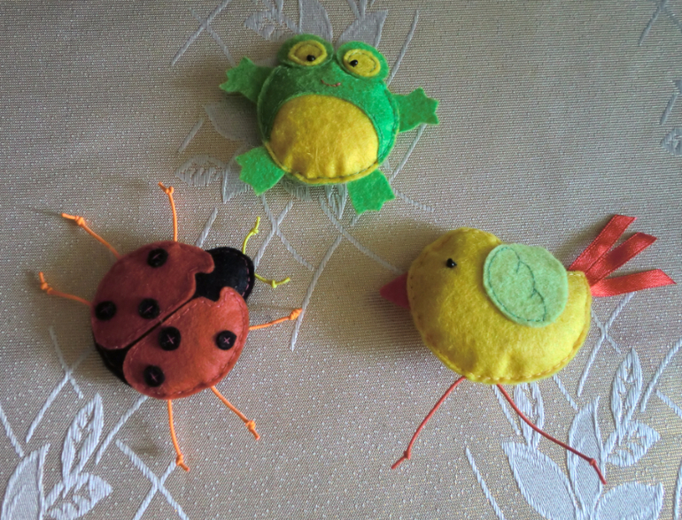 Пошились еще до НГ у меня зверюшки из фетра на магнитах. Уже волка успели потерять))