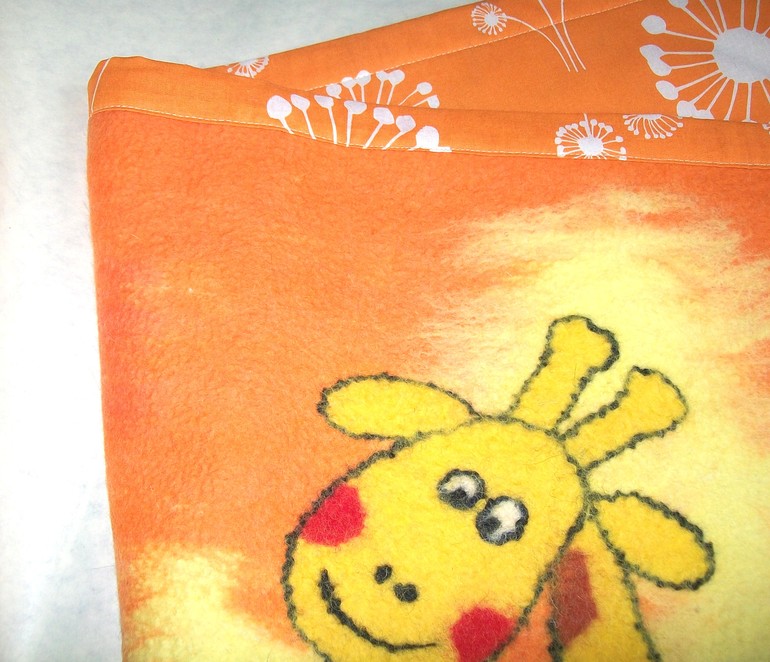 Одеяльце получилось легкое - 700 грамм всего, сваляно из мериносовой шерсти. Рисунок выполнен в технике шерстяная аппликация.