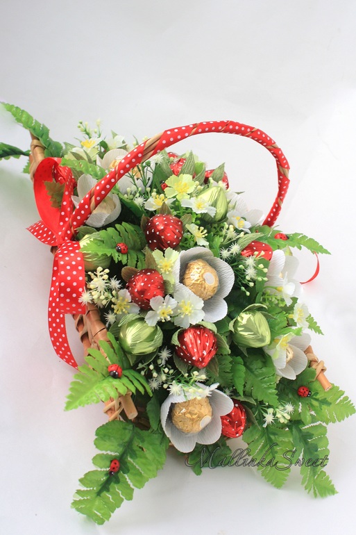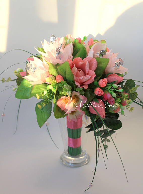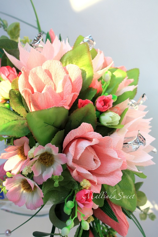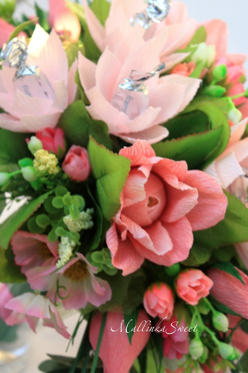 Маша, очень красивый, стильный букет! Я сначала подумала, что там хрусталики, а оказалось конфетки!