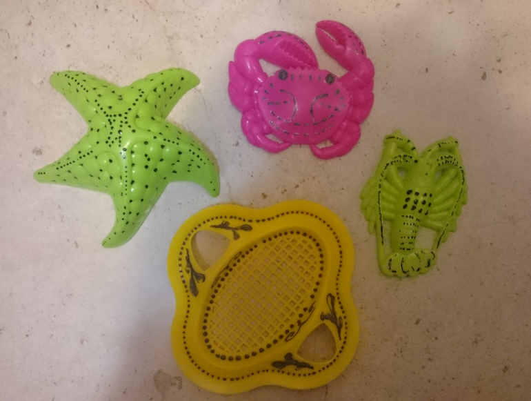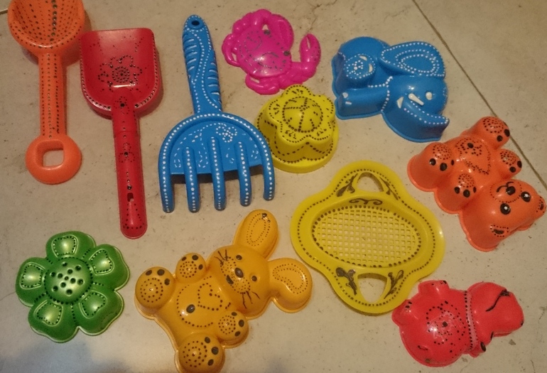 прикольно! Идея для опознавания своих игрушек отличная! :) жаль только, чтопрогулки за 2 с формочек все сотрется...