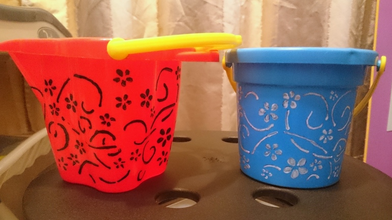 Ведерки, рисунок с трафарета, правда не очень получился ((((