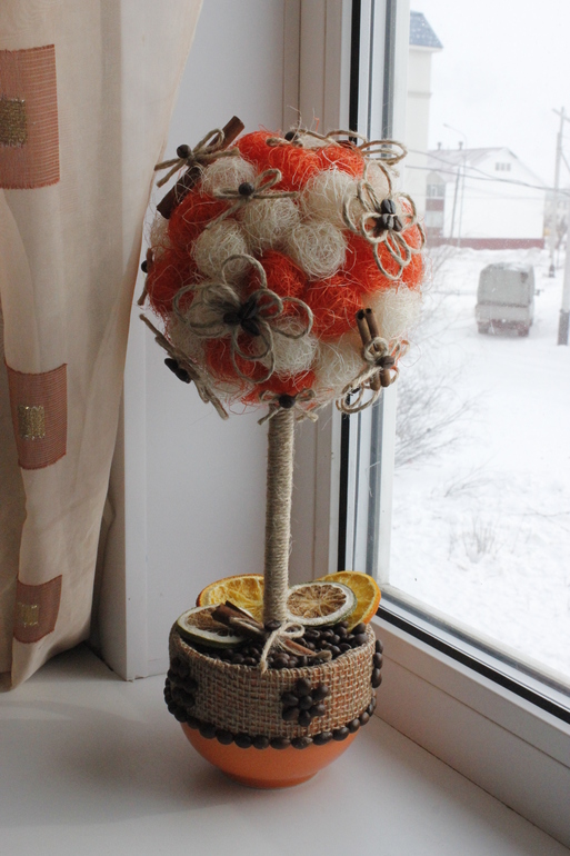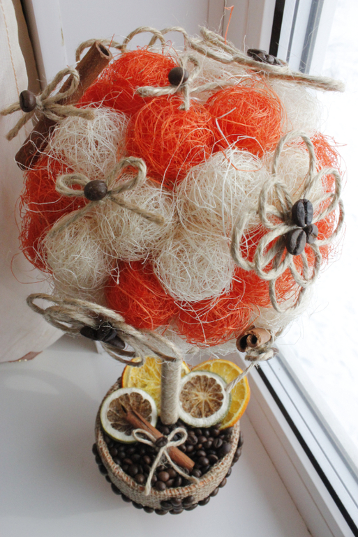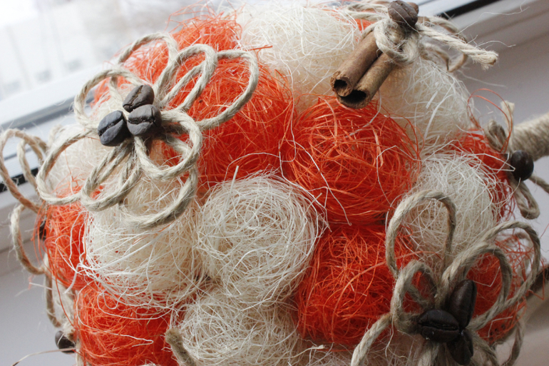 Очень красиво! а на первом это сизаль такими клубочками скручена?
