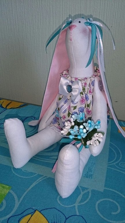 В наборе по изготовлению игрушки была выкройка, которая соответственно осталась у меня и вторую зайку в моем исполнении естественно не пришлось долго ждать... (руки то чешутся творить)))
