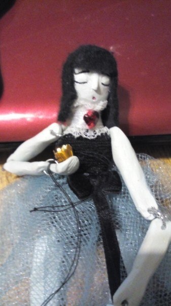 Потихоньку осваиваю новый материал. Куколка- малышка, чуть больше ладони, но съемная только корона, потому что на одежде вдохновение меня покинуло.Хотя обычно предпочитаю, что бы все сломалось.