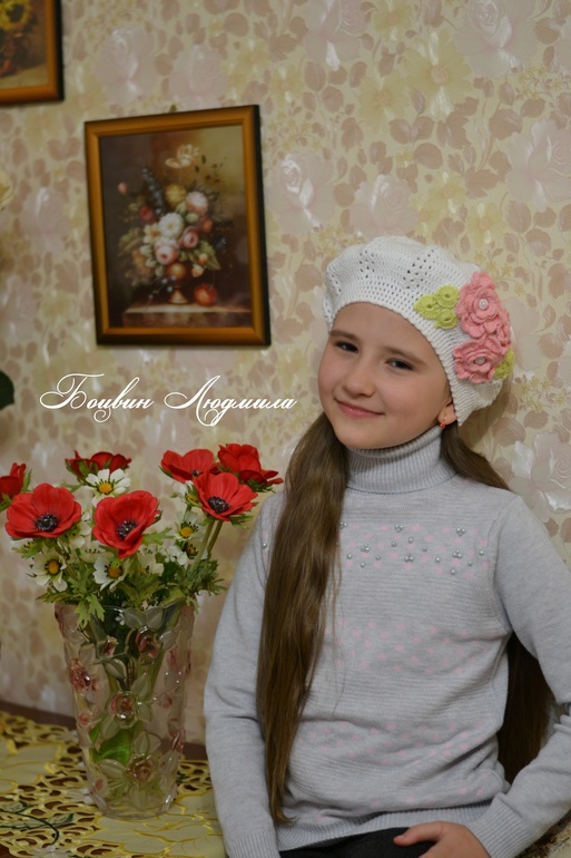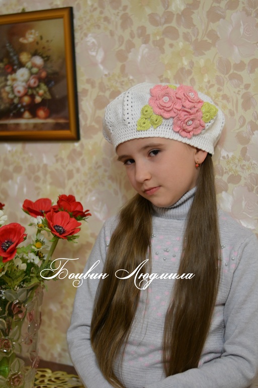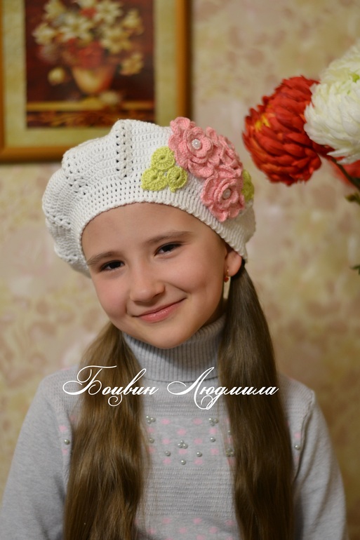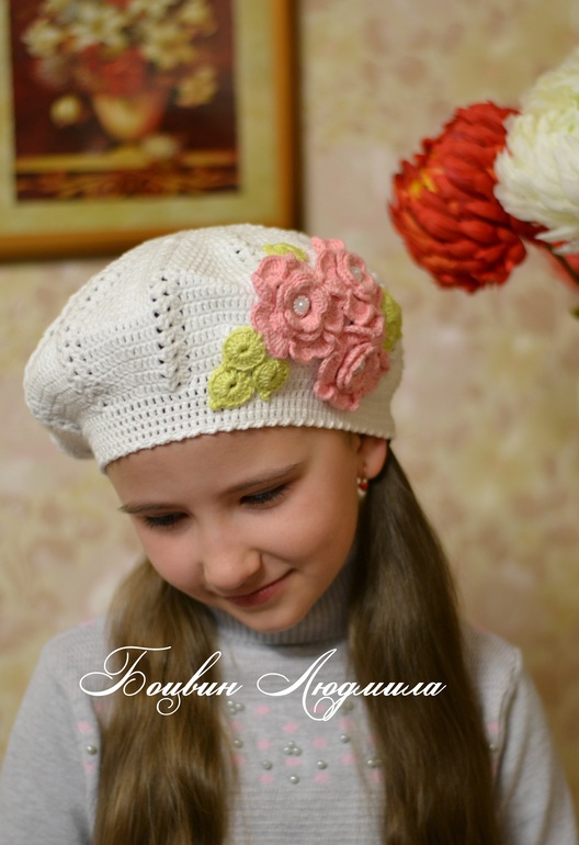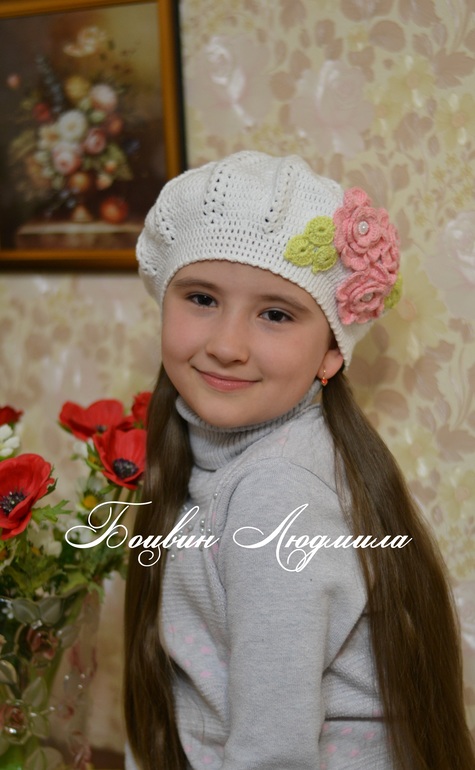 Замечательный беретик))) очень аккуратненький, миленький и лёгенький- как сама весна)))п.с. Людочка, а можно схемку поклянчить? я бы мамочке хотела беретик связать (а то что ни нахожу в инете не нравится) — буду очень благодарна)))
