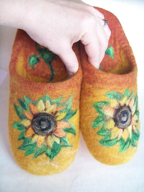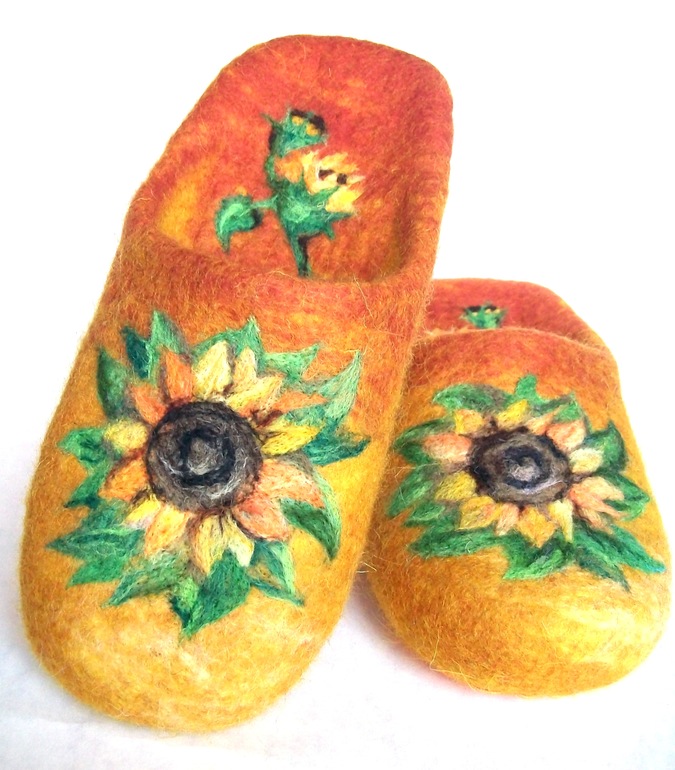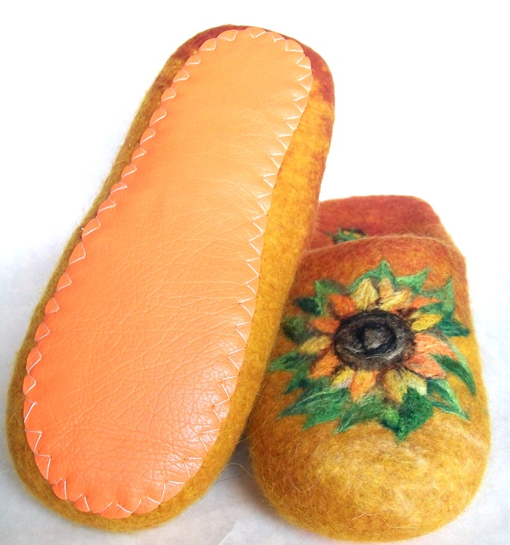 Фелтинг (валяние шерсти)Свалялись тапочки на днях. Очень захотелось тепла и солнышка!