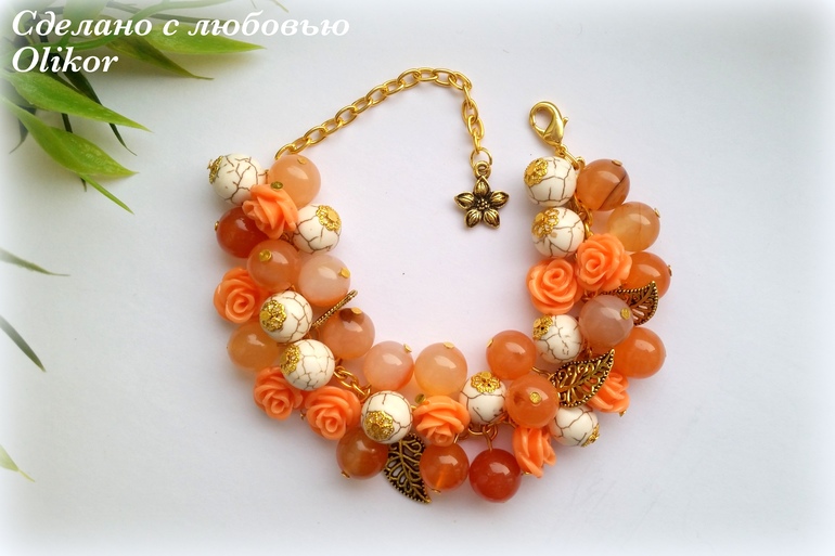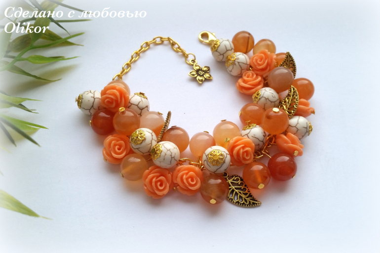 Бижутерия для слингомам. Слингобусы. Грызунки."Сама весна!" - сказал муж, когда я показала ему этот браслет. Что может быть приятнее такой оценки?=) Нежный браслет на цепочке из нежного персикового сердолика, бежевого говлита и резных розочек из коралла.