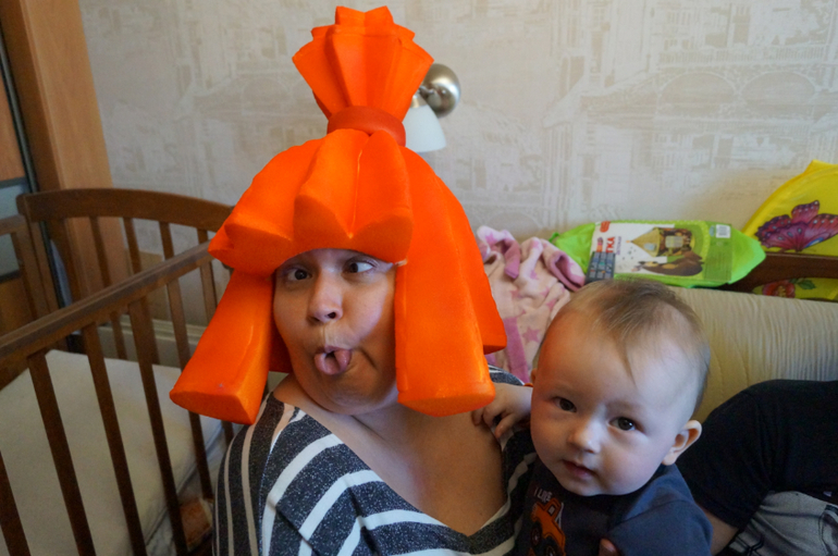 Поделки с детками.Дочка давно просила сделать из неё Симку, тройка бессонных ночей и прическа есть. Осталось самую малость, помогатор и костюм)