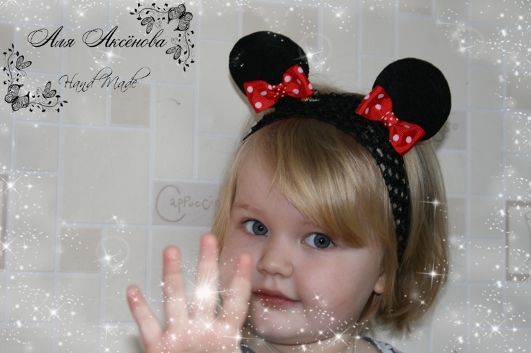 Бижутерия для слингомам. Слингобусы. Грызунки.Вот такие замечательные ушки Микки Мауса сотворились у меня сегодня ночью. Сделаны из фетра и украшены ярким бантиком. Ушки можно прикрепить на повязочку, а когда подрастет и волосиков станет побольше, то крепить уже сразу на волосики.