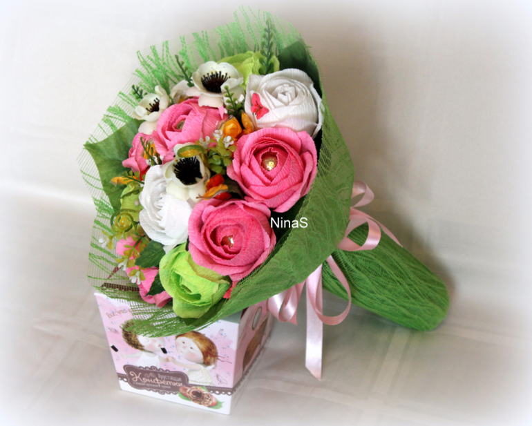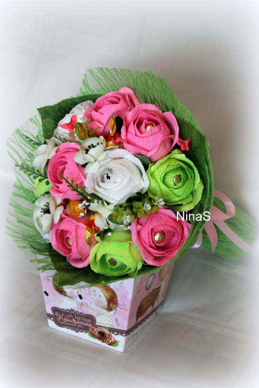 постоянная клиентка со словами " Не могу пойти без букета. Она любит сладкое и знает что я дарю такие букеты" ))))