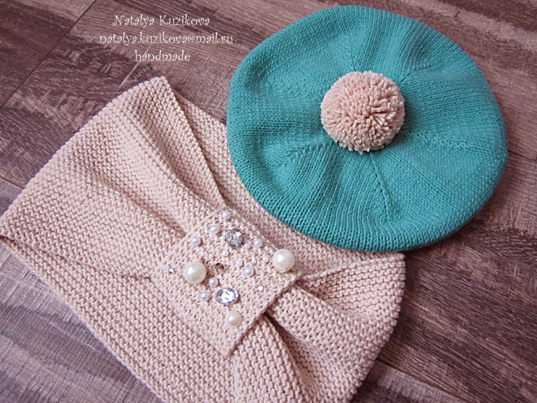 Беретик со стразами и снуд