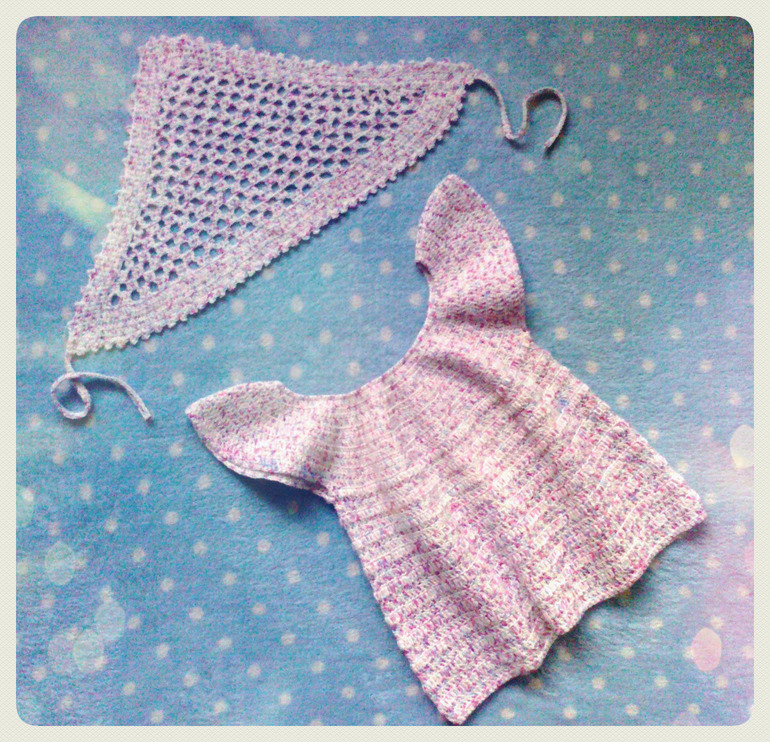 Спасибо!Там по краешку косынки и по горловинке будут ленточки продеты,не стала сейчас делать,все равно до лета убрала)